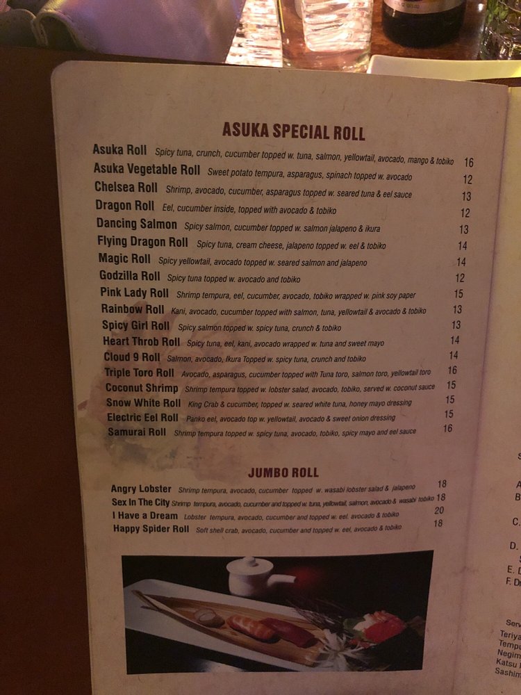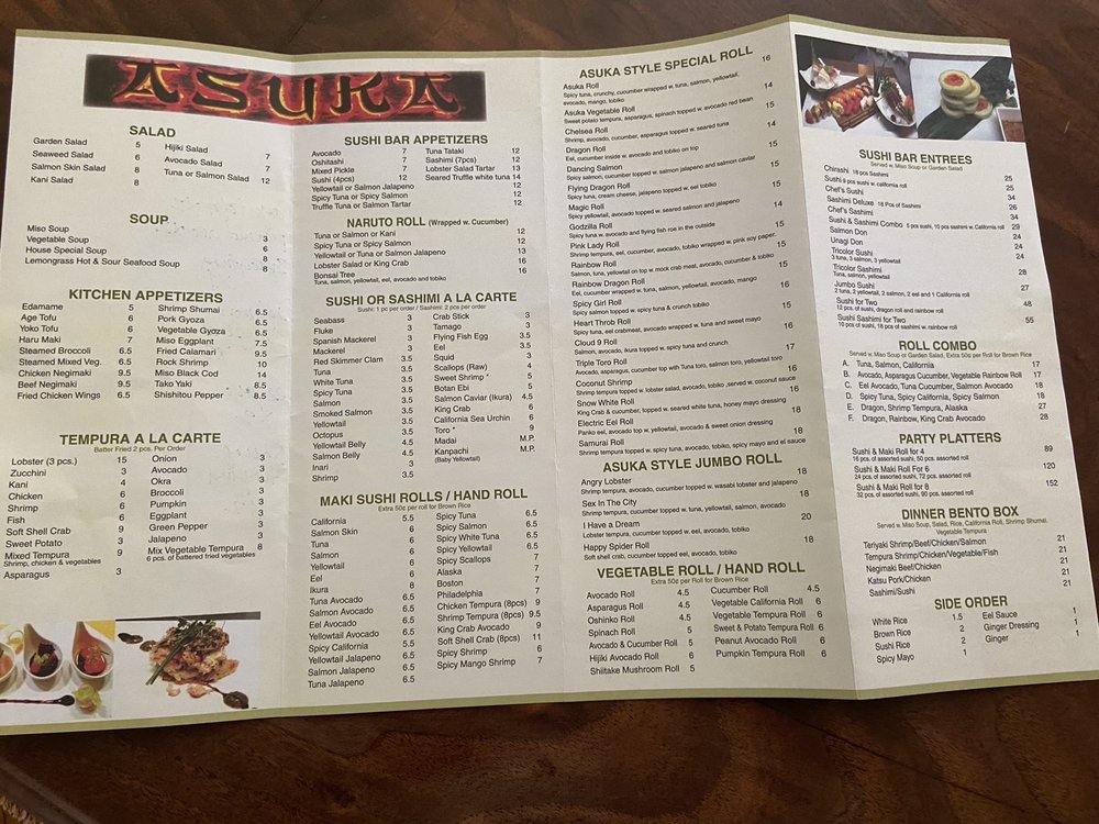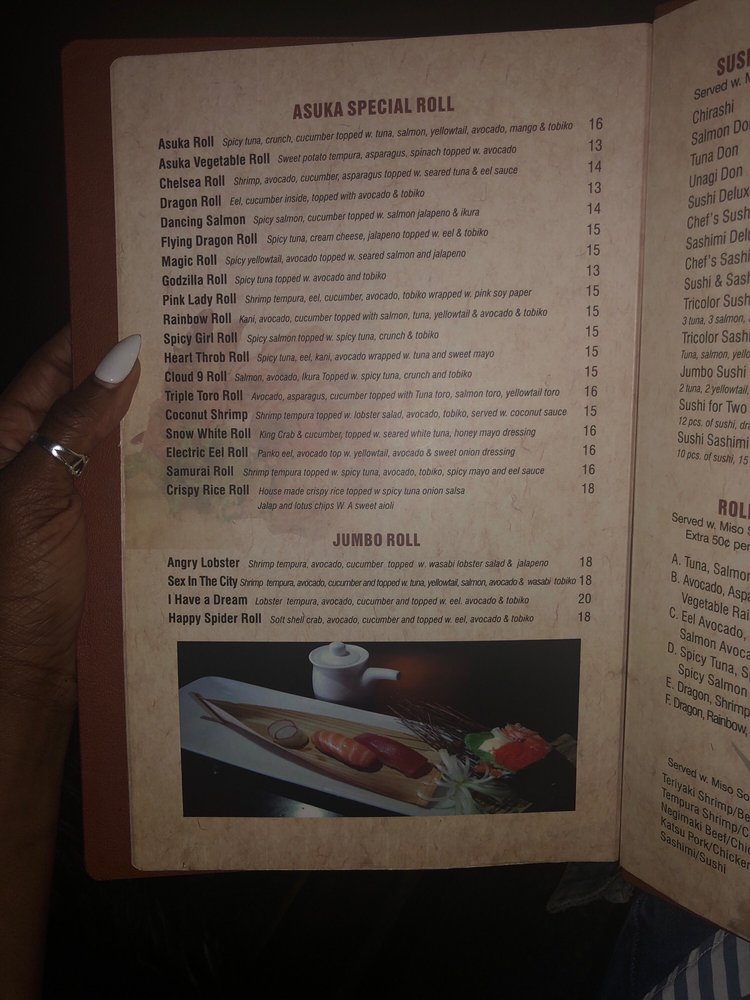 Located in the heart of Chelsea, Asuka Sushi offers a fusion of Japanese and Thai cuisine with a range of unique dishes. Asuka Style Jumbo Rolls stand out with creations like the Angry Lobster Roll and the Sex in the City Roll. The diverse menu also includes alcoholic beverages like the Geisha and Tokyo Mojito. Customers rave about the fresh sashimi, quality sushi, and flavorful cocktails. The modern and inviting atmosphere, along with attentive service, make it a go-to spot for lunch, dinner, or special occasions. Asuka Sushi's commitment to sustainability, with options like compostable containers and plastic-free packaging, adds to its appeal. Whether you're a sushi enthusiast or looking for a new dining experience, Asuka Sushi promises a memorable and delicious meal.